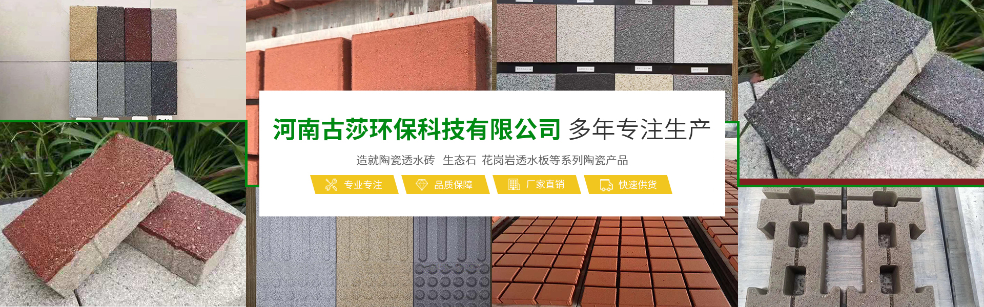 河南古莎環(huán)保科技有限公司總坐落于交通樞紐城市鄭州,是一家具備研發(fā)、生產(chǎn)、銷售能力為一體的綜合性現(xiàn)代化陶瓷企業(yè)。本公司專業(yè)生產(chǎn)經(jīng)營生態(tài)陶瓷透水磚、生態(tài)鋪石、PC仿石材透水磚、PC仿石材景墻磚、普通透水磚、燒結(jié)磚等系列產(chǎn)品,完善的研發(fā)團隊,完善的生產(chǎn)流水線設(shè)備,打造完善的陶瓷企業(yè)。古莎環(huán)保科技現(xiàn)代化陶瓷企業(yè)是美化城市,改善生活環(huán)境質(zhì)量的生態(tài)環(huán)保產(chǎn)品,可廣泛應(yīng)用于公共建筑廣場、城市道路、公園、藝術(shù)景觀、廊道、房地產(chǎn)、別墅住宅小區(qū)、地鐵口、車站、高速公路服務(wù)區(qū)等。古莎環(huán)保科技在原有陶瓷企業(yè)基礎(chǔ)上,另拓展園林綠化、市政施工、瀝青包工包料施工、公路維修等業(yè)務(wù)板塊,專業(yè)培訓(xùn)了一些園林綠化、市政施工技術(shù)人員,并有多年的施工養(yǎng)護(hù)經(jīng)驗以及建筑工程經(jīng)驗。保證市政工程施工質(zhì)量以及園林綠化后期養(yǎng)護(hù)規(guī)范化、專業(yè)化。古莎環(huán)保科技所遵循的企業(yè)與品牌發(fā)展思路,是奠定在品質(zhì)與產(chǎn)品應(yīng)用之上。環(huán)保理念由我們共同倡導(dǎo),理性思考,以推進(jìn)步,感性溝通,以共建優(yōu)越。古莎環(huán)保科技與大家真誠合作,攜手共進(jìn),為助力海綿城市建設(shè),建筑高品質(zhì)的綠色城市生活貢獻(xiàn)一份力量!